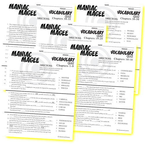 Maniac Magee Vocabulary List And Quiz Chapters 10 18 Teaching Resources